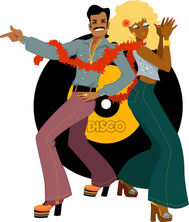 黒人男性と黒人女性の全身 70年代 80年代 のイラスト素材
